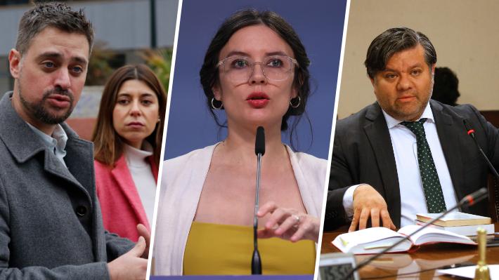 Diputados socialistas Daniel Manouchehri y Daniella Cicardini; vocera de Gobierno Camila Vallejo; y abogado Enrique Aldunate.