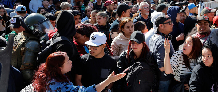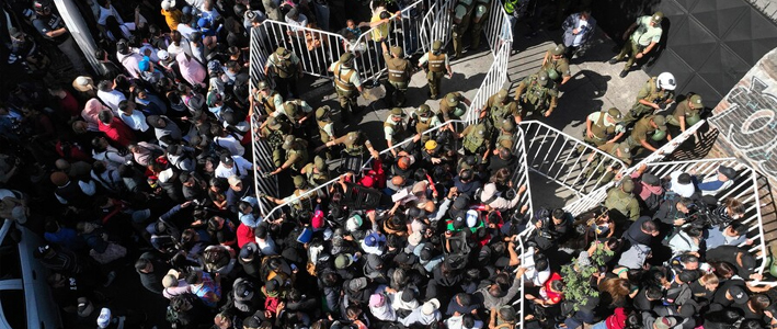 Estadio Víctor Jara, en la comuna de Estación Central, a raíz de la concurrencia de más de 3 mil migrantes que buscan enrolarse en el sistema chileno.