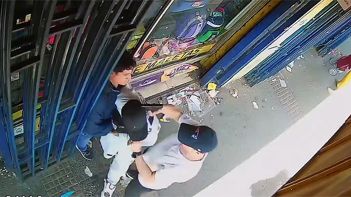 Según quedó registrado en cámaras de seguridad del sector, la víctima fue abordada de forma sorpresiva por los dos individuos, quienes la intimidaron con armas blancas para sustraer su teléfono celular.