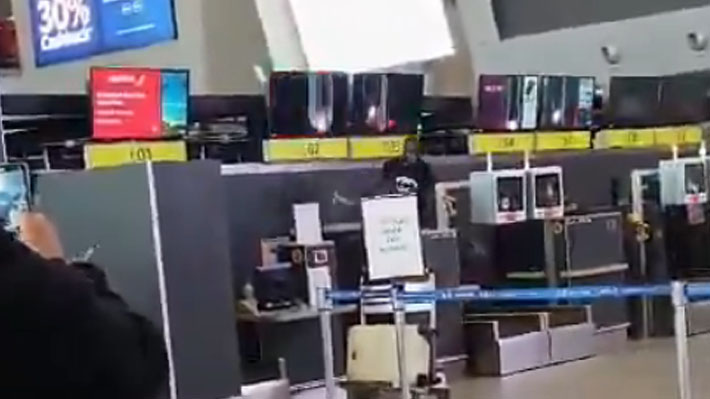 Según imágenes difundidas por redes sociales, el individuo rompió con un martillo pantallas que avisan el estado de los vuelos.