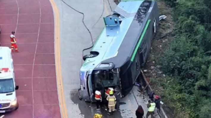 volcamiento de un bus con cerca de 30 pasajeros en Panguipulli, en la Región de Los Ríos.