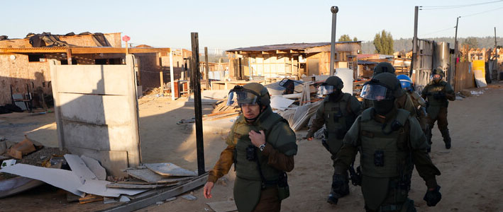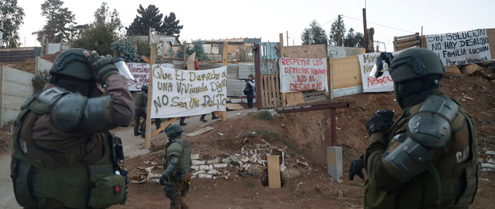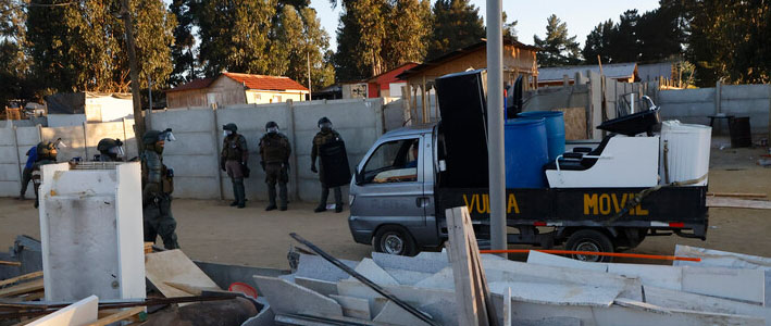 Contingente de Carabineros realiza la operación. Desde la institución policial aseguraron que cerca de las 10.45 horas las autoridades entregarán detalles del operativo de despeje de la toma.