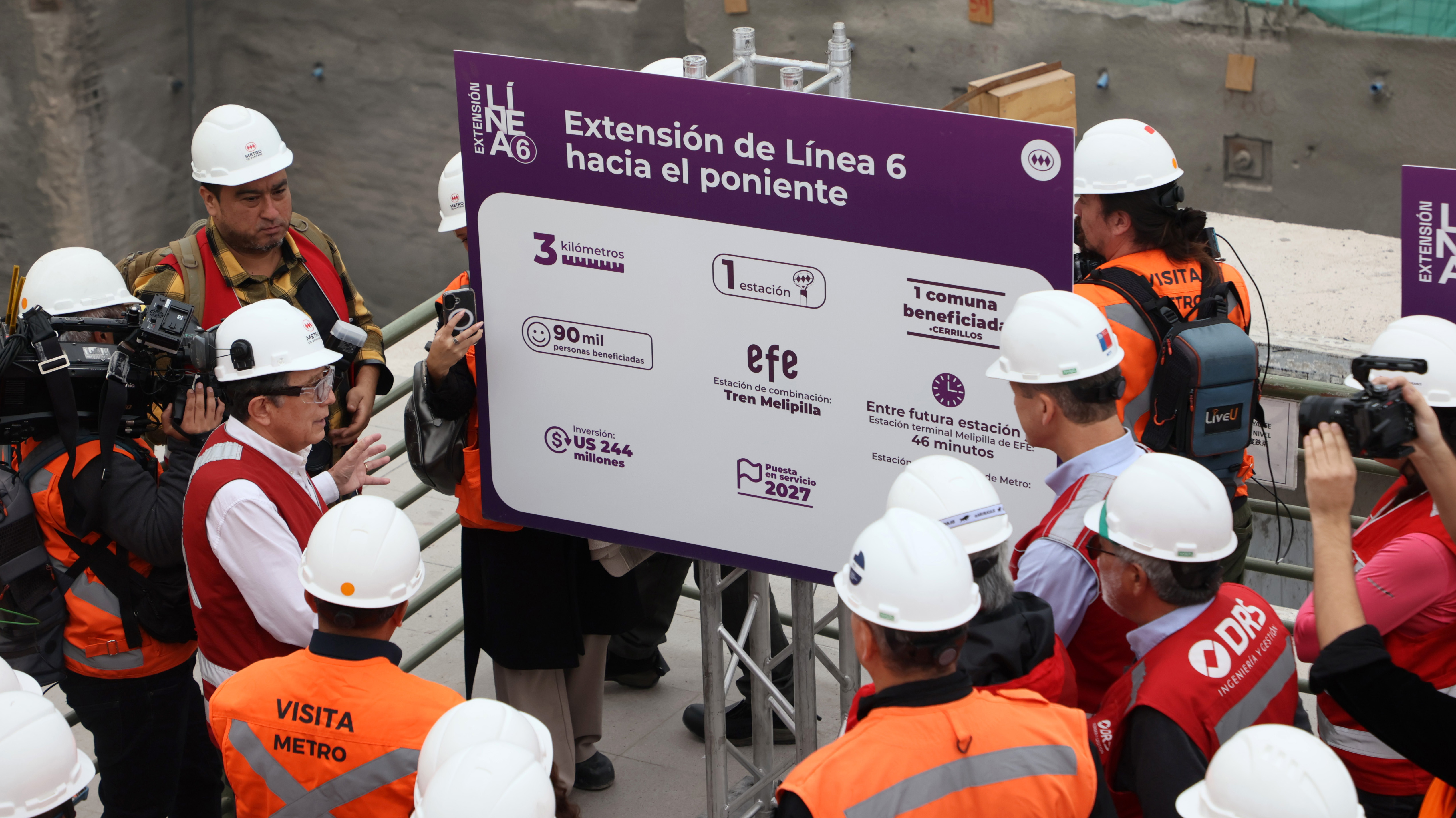Este miércoles autoridades revisaron en terreno el avance de las obras de construcción de la extensión de la Línea 6 hacia el poniente, que consiste en la ampliación del trazado en tres kilómetros y la implementación de la nueva estación Lo Errázuriz hacia el poniente de la terminal Cerrillos.
