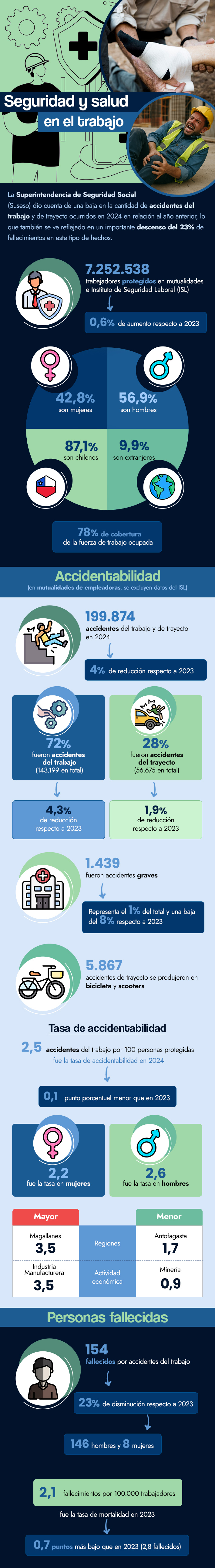 De acuerdo al Informe Anual de Seguridad y Salud, presentado por la Superintendencia a de Seguridad Social (Suseso), los accidentes graves reflejaron una baja del 8% respecto a 2023.