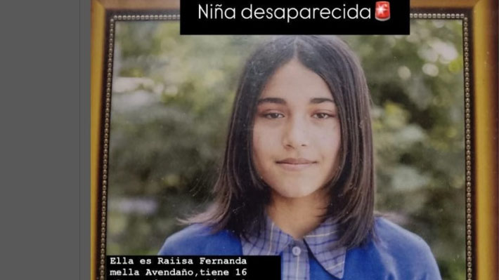 Huechuraba Informa publicó en su cuenta de Instagram una foto de la meno, identificándola y señalando que tiene "16 años y desapareció en la comuna de Huechuraba ayer a las 7.45 de la mañana que fue a la hora que ella se iba a su colegio".