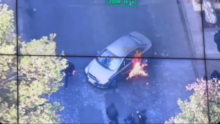 Además, desconocidos encendieron fuego a un vehículo particular, como también rompieron parte de la señalética pública ubicada en el sector.