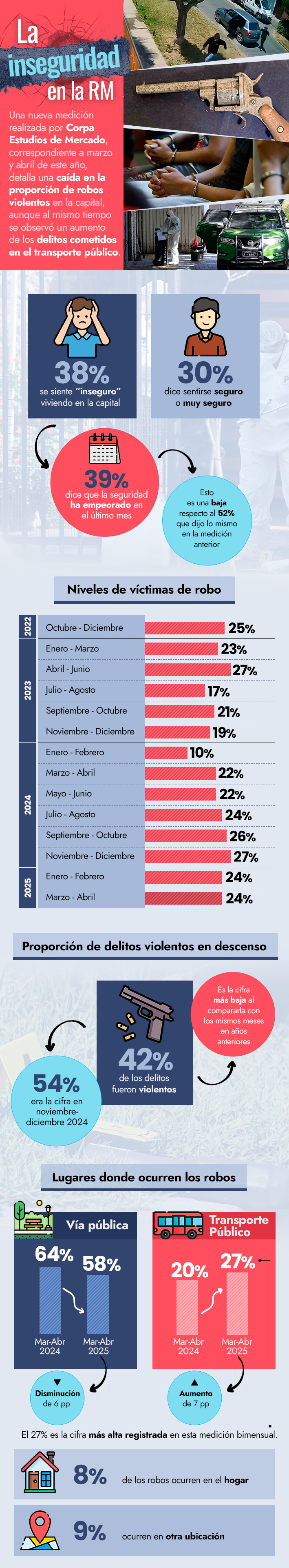 Encuesta en la RM revela aumento de robos en el transporte público y una baja en la proporción de delitos violentos