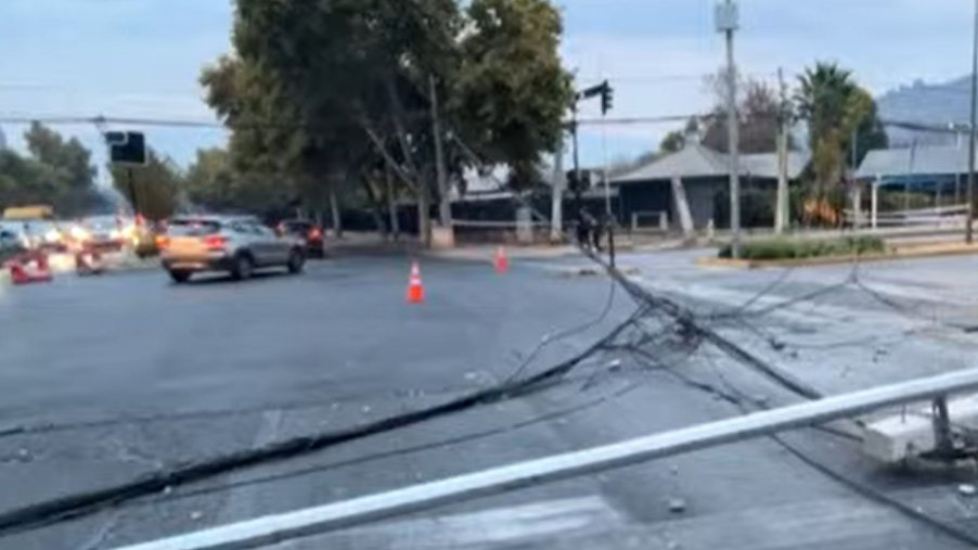 El hecho se registró en las avenidas Las Condes con Padre Hurtado, cuando cerca de las 21:30 horas un camión de gran dimensión botó cinco postes debido a que sus cables se habrían encontrado a baja altura.