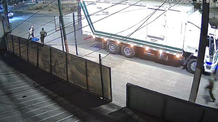 "Quédate ahí hue... carabinero, quédate ahí". Eso se escucha en el video que muestra cómo un carabinero de civil recuperó un camión que momentos antes había sido robado en Cerrillos.