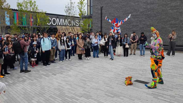El ajetreo del pabellón atrajo la mirada de los visitantes locales, quienes se deleitaron con el show de un organillero. Si bien el lugar en que expone Chile es de "tipo B", es decir de tamaño medio, la ubicación no es la mejor considerando que el pabellón de Perú, por ejemplo, quedó cerca de la puerta que conduce al metro de Osaka. Sin embargo, lo que podría considerarse una desventaja, la organización chilena la suple con intervenciones que llaman la atención del público japonés: al citado organillero, se suma un mimo llamado Karcocha y la mascota Chiri Chan, que hoy debutó como corpóreo.