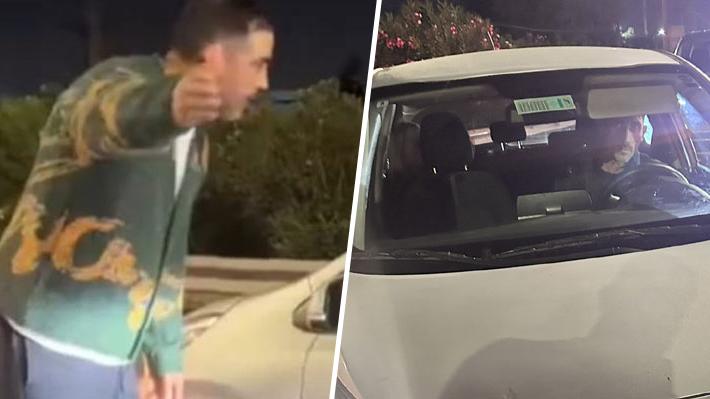 Viene curado. ¡Bájate ahora, po hue...! Vení alcoholizado, bájate. Curado no se puede manejar. Anda curado arriba del auto".