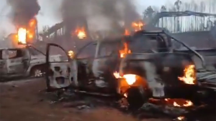 atentado incendio en la Región del Biobío, donde un grupo de cerca de 5 desconocidos quemaron maquinarias en la comuna de