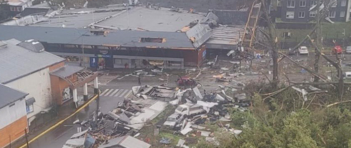 Diversos estragos causó el tornado que pasó durante la tarde de este domingo por Puerto Varas, región de Los Lagos, y que, según informó la Dirección Meteorológica de Chile (DMC), alcanzó una clasificación de EF-1 (138 - 178 km/h).