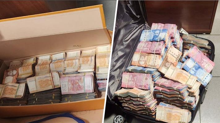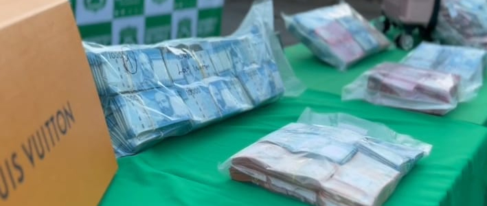 En su domicilio se incautó una pistola 9 mm con cargador y municiones, una máquina contadora de billetes, además de la suma de $371 millones 745 mil en efectivo, distribuidos en bolsas y maletas y en distintos compartimentos del inmueble.
