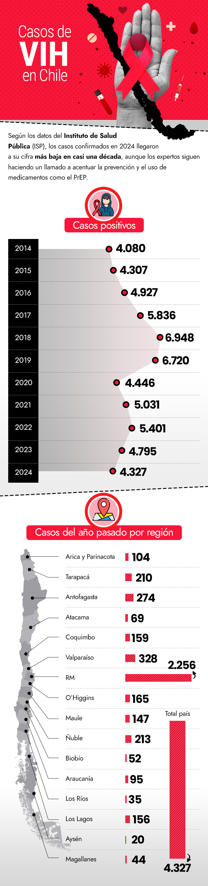 Caen casos confirmados de VIH en Chile: Revisa la evolución anual y cuántos se registraron por región en 2024