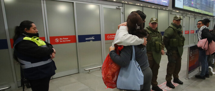 Familiares reciben a chilenos deportados de Estados Unidos.