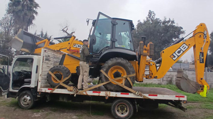 Una retroexcavadora, un camión y una camioneta. Esos son los tres vehículos que el Departamento SEBV de Carabineros recuperó esta tarde en Colina, Región Metropolitana.