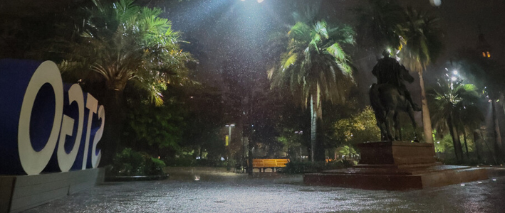 Arnaldo Zúñiga, de la Dirección Meteorológica de Chile (Meteochile) señaló en conversación con Radio Cooperativa que ha caído "16.1" milímetros de agua en la capital.