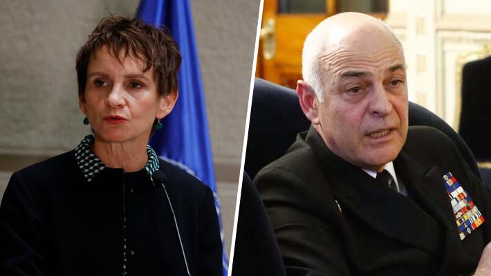 La candidata Carolina Tohá y el almirante Juan Andrés de la Maza.