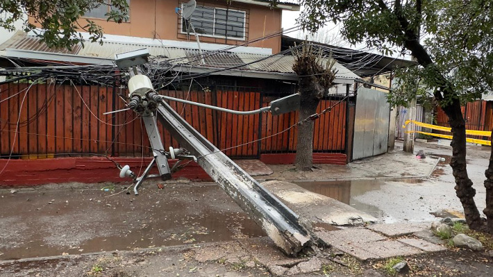 La tensión generada en los cables provocó la caída de un poste, el cual impactó directamente sobre la reja de la vivienda de una familia.