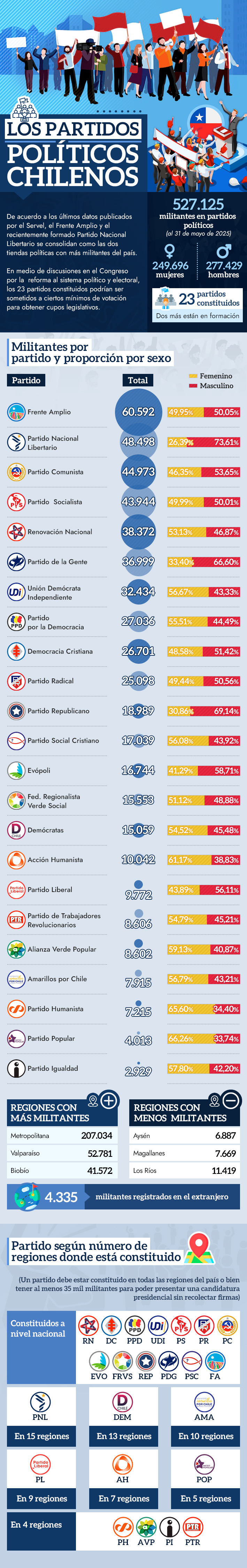 Más de medio millón de militantes en Chile: Frente Amplio, libertarios y comunistas son los partidos con más miembros