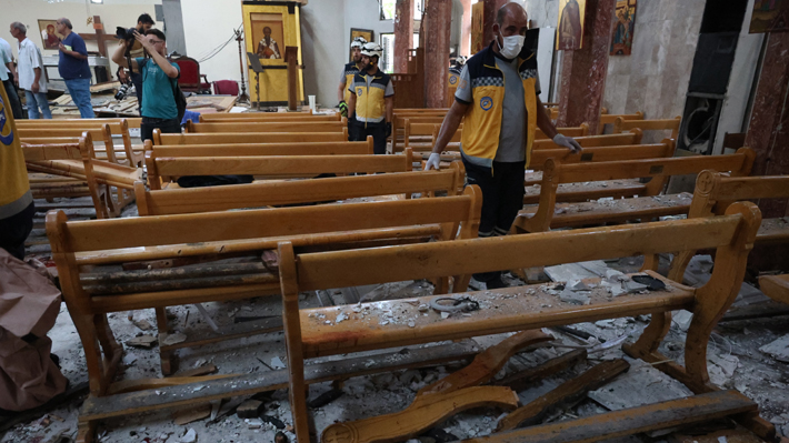 Los daños que dejó el ataque a la iglesia San Elías de Damasco, en Siria.