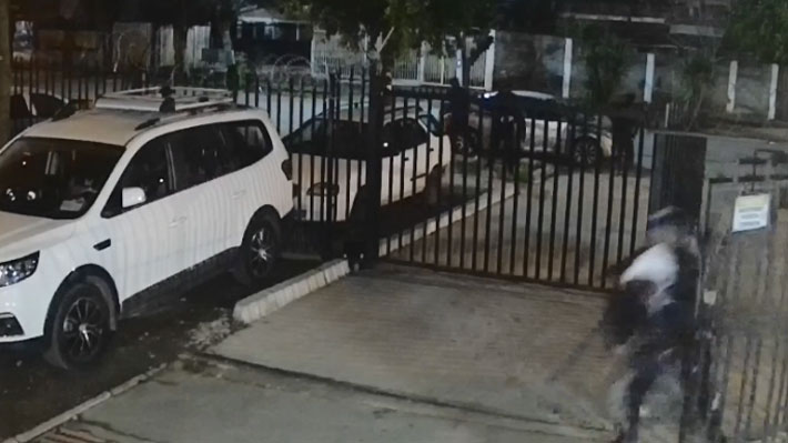 40 los impactos realizados por cuatro hombres.En los registros se aprecia cómo dos jóvenes iban ingresando al edificio y debieron correr para refugiarse ante la presencia de los sujetos.