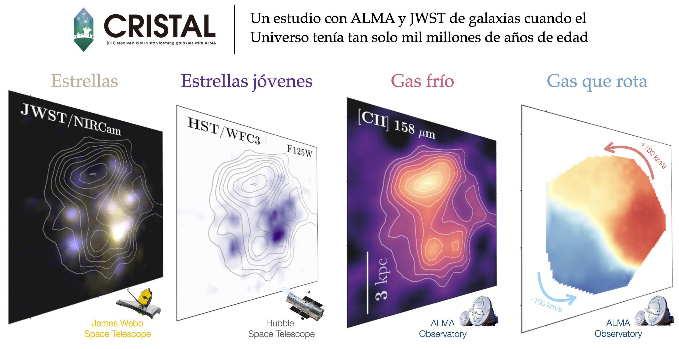 A través del proyecto CRISTAL ("[CII] Resolved ISM in STar-forming galaxies with ALMA") se logró realizar observaciones del primer "censo" del gas, el polvo y las estrellas en galaxias cuando el universo tenía apenas mil millones de años.