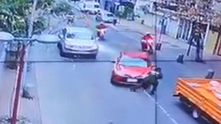 Un carabinero fue atropellado esta tarde en medio de un procedimiento policial de persecución a automóviles en pleno centro de Santiago.