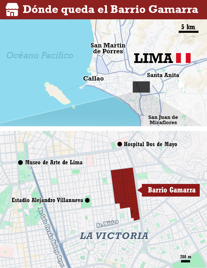La zona comercial ubicada en la capital de Perú, en el distrito La Victoria (ver mapa al final de la nota), vivía una situación similar a la del barrio santiaguino. Era común ver su nombre en noticias vinculadas con la delincuencia, gran presencia del comercio ilegal e, incluso, con asesinatos.