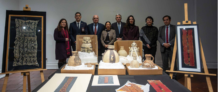 Este viernes el Ministerio de las Culturas, las Artes y el Patrimonio realizó la devolución de bienes arqueológicos a Perú, tras ser incautados en investigaciones por ventas ilegales en plataformas en línea.