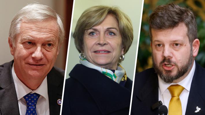 José Antonio Kast (Partido Republicano), Evelyn Matthei (UDI) y Johannes Kaiser (Partido Nacional Libertario).