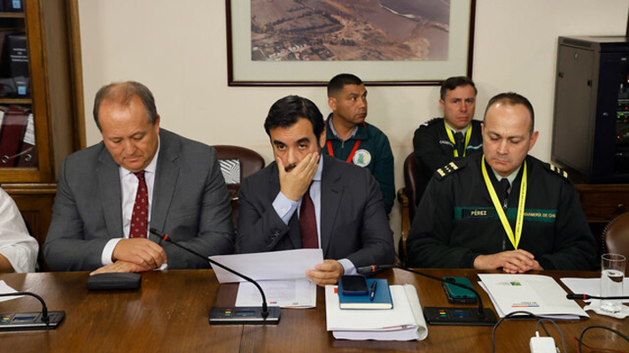 El fiscal Valencia, el ministro Gajardo y el director (s) de Gendarmería, Rubén Pérez, en la comisión de seguridad de hoy en la Cámara.