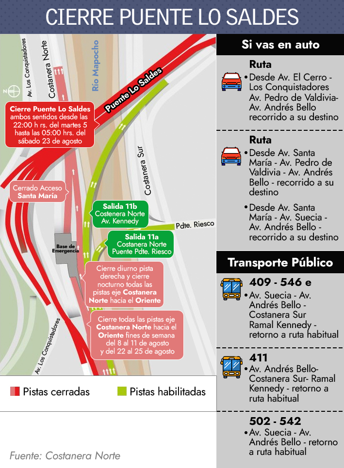 "Todo lo que significa el tránsito vehicular requiere que planifiquen sus viajes, porque efectivamente se va a generar mayor congestión. Nosotros le pedimos a cada uno de todos los usuarios de Puente Lo Saldes como también de Autopista Costanera Norte que planifiquen sus viajes", afirmó el subsecretario del MOP.