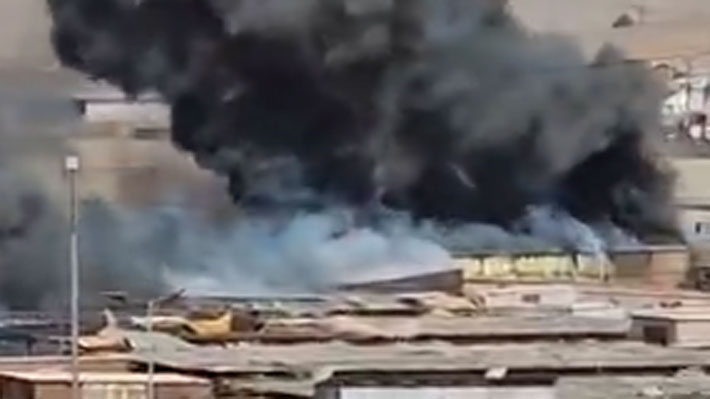 Un incendio de gran intensidad está afectando a varios locales comerciales en Arica. Específicamente a los ubicados en el mercado Asocapec.