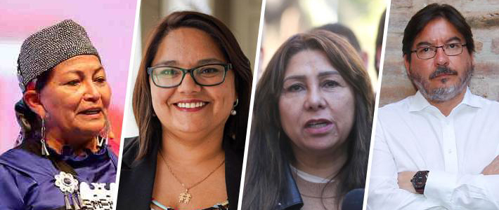 Los exconvencionales Elisa Loncón (IND-PC), Ruth Hurtado (Republicano), Giovanna Grandón alias "Tía Pikachu" (IND-AH) y Marcos Barraza (PC), que buscan un cupo en el Parlamento. Foto: Emol.