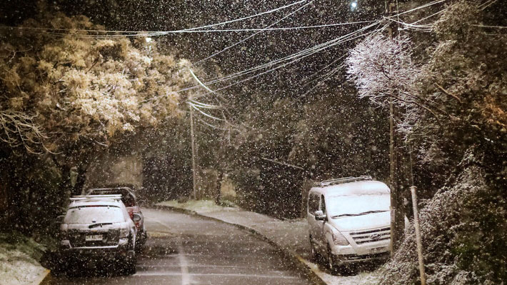 Esta noche se está registrando la caída de nieve en varios puntos de la Región Metropolitana.