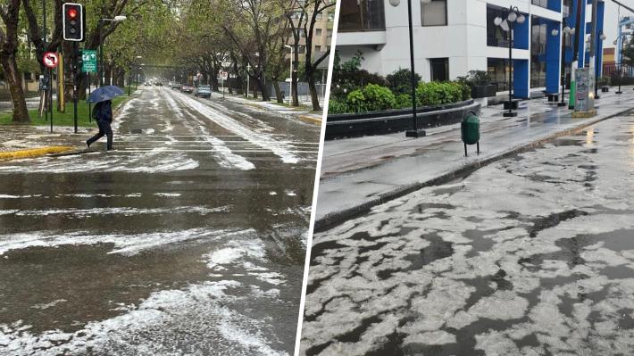El evento meteorológico se registró primero en la Región de Valparaíso, donde en la ciudad homónima, en Viña del Mar y en Quilpué se dio cuenta de la caída de lluvia con granizo que cubrió de blanco las calles.