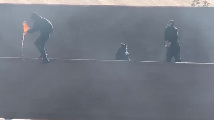 Incluso, un grupo de ellos se subió al techo del establecimiento para lanzar bombas molotov a las fuerzas policiales.