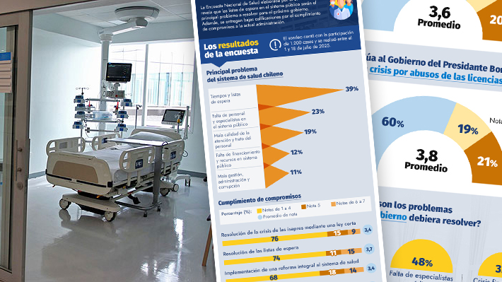 Según el sondeo de la U. Andrés Bello, el actual gobierno recibe reprobación en el abordaje de la crisis financiera de hospitales y la crisis por abusos de licencias médicas.