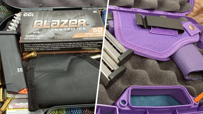 Durante el registro, se encontraron una pistola Smith & Wesson modelo Springfield 9 mm y una pistola marca Glock modelo 48. También había 2 cargadores de 8 municiones, una funda y caja de seguridad transportadora, un cargador de 10 municiones, y 72 municiones 9 mm, entre otras piezas de armamento.