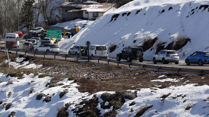 gran caos y congestión vehicular en los accesos a Farellones, en la comuna de Lo Barnechea. Filas interminables de automóviles esperando subir a la nieve, lo que llevó a la municipalidad a criticar al Ministerio de Obras Públicas por el "abandono" de la ruta.