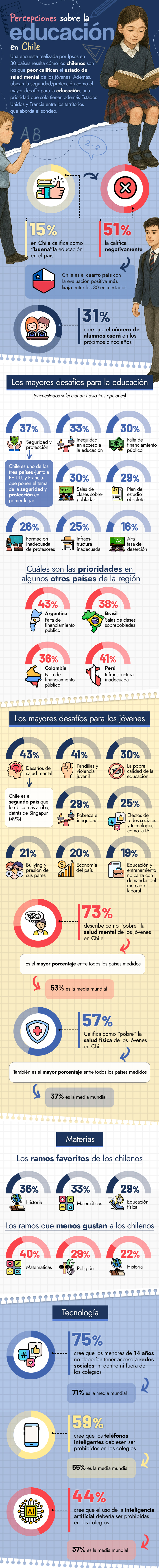 Chilenos ponen la seguridad como mayor desafío en educación y es el país que peor califica la salud mental de los jóvenes