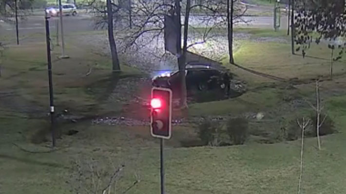 Las cámaras municipales captaron a dos personas que abandonaron el auto y escaparon por el puente Lo Curro.