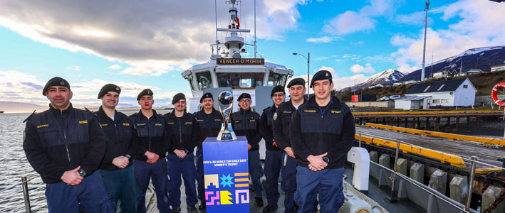 El trofeo de la Copa Mundial Sub-20 de la FIFA Chile 2025 visitó Puerto Williams.