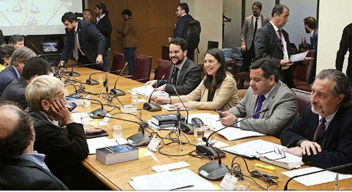 La ministra de la Segpres, Macarena Lobos, y el subsecretario Nicolás Facuse, al tramitar la reforma del voto migrante en la comisión de Constitución.