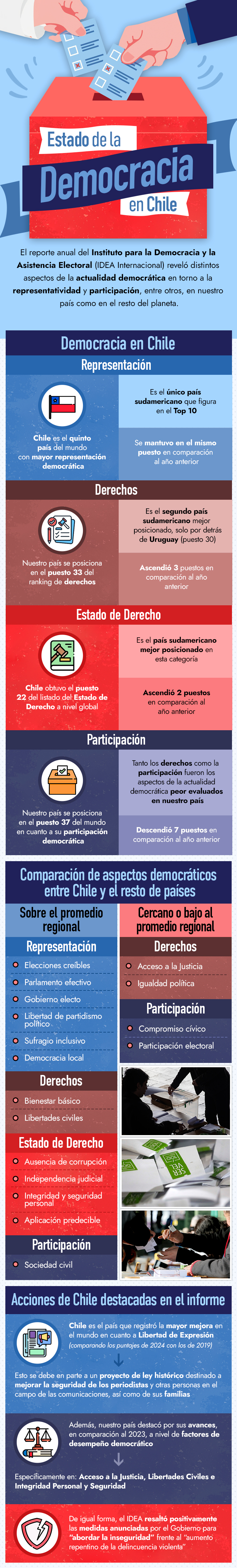 Estado de la democracia: Chile se mantiene entre los cinco países con mayor representación democrática