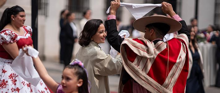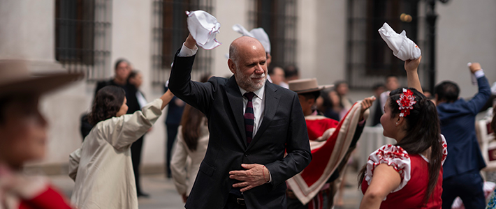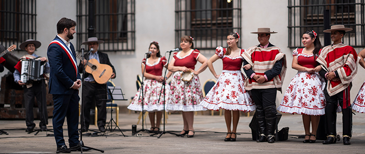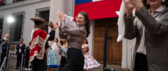 El homenaje musical estuvo acompañado por el Grupo Folclórico Ventisquero y tanto ministros como otros invitados disfrutaron bailando cuecas.