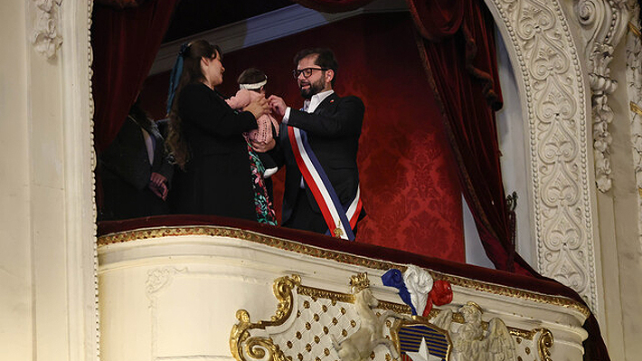 El mandatario asistió con su pareja, Paula Carrasco, y su hija Violeta, con quienes presenció la presentación desde el Palco Presidencial del recinto.