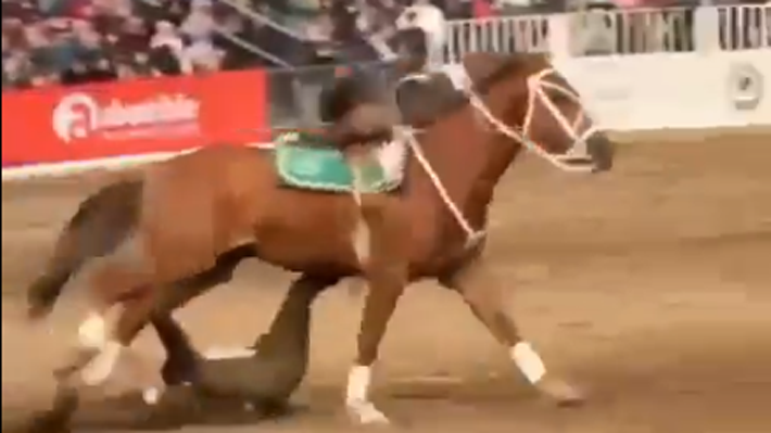 En un registro compartido en redes sociales se puede apreciar la gravedad de la herida. El carabinero fue arrastrado por el caballo que galopaba a gran velocidad por la arena del recinto.